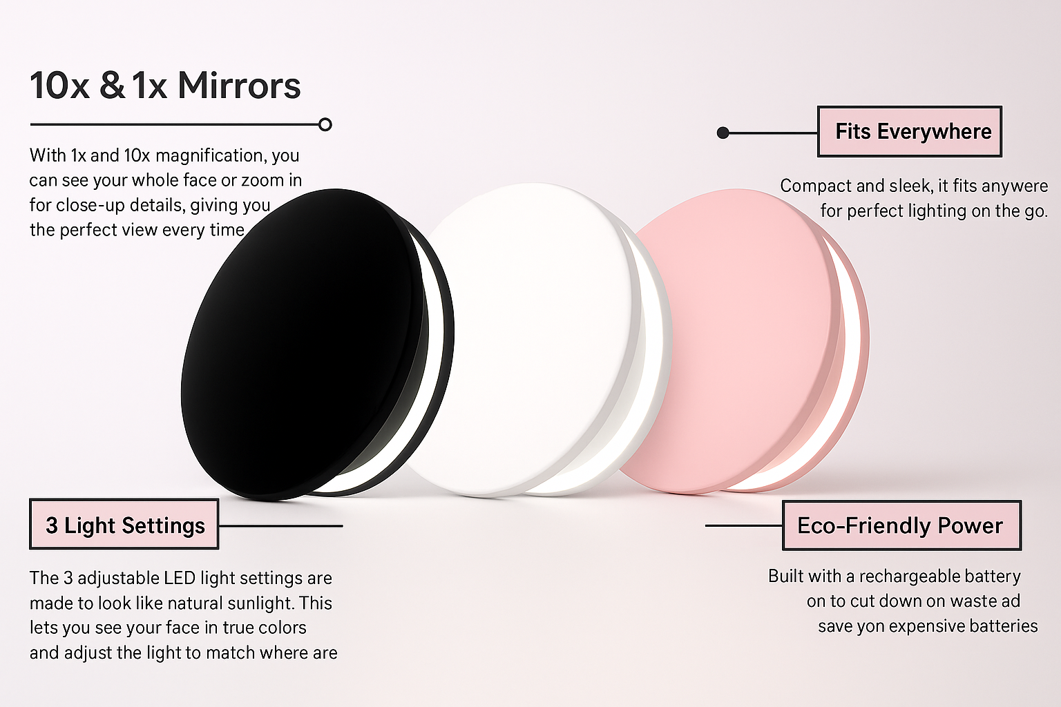 With 3 adjustable light settings, Mini Taylor gives you perfect lighting for any beauty task: